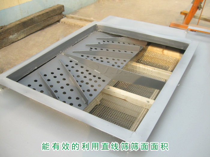 加裝分料器的直線振動篩能有效的利用直線篩篩面面積,能使物料均勻分布在篩面上,促進物料在篩面上又從分的篩分,從而大大提升物料篩分精度。