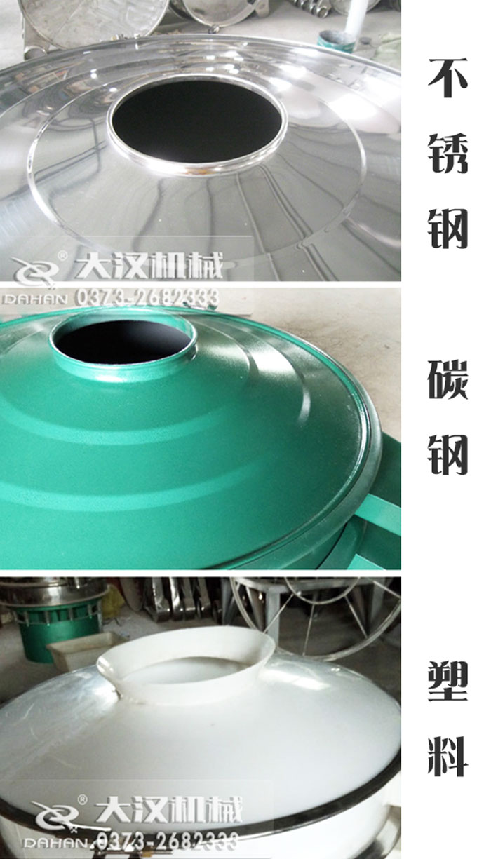 大漢機械供應(yīng)400-1800振動篩(旋震篩)各種型號的防塵蓋部件,常用材質(zhì)有不銹鋼、碳鋼、塑料等3種材質(zhì),歡迎新老客戶采購。
