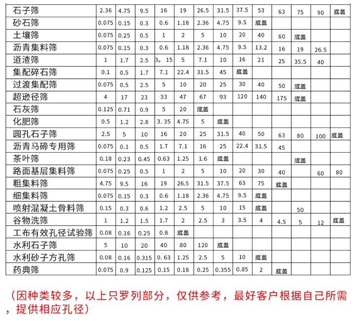 網(wǎng)孔尺寸:2.36mm-0.038mm